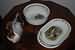 Tete a tete in metallo e porcellana 2 tazzine e zuccheriera. | 20 | |||